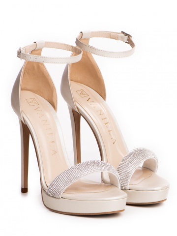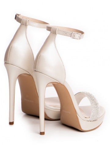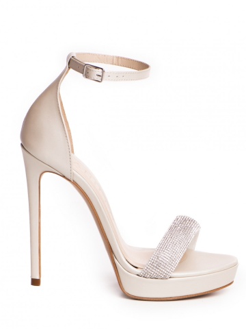 Sandale Cassiopeia cu toc subtire, piele naturala ivoire plus cristale