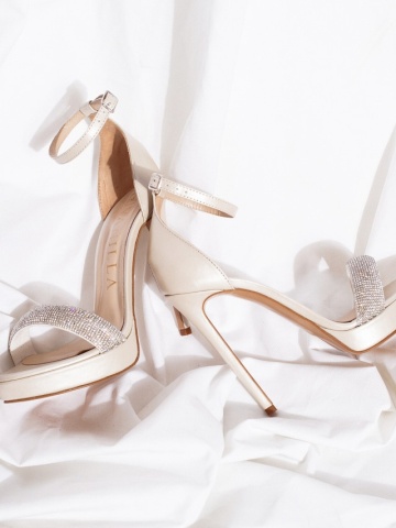 Sandale Cassiopeia ivoire cu cristale concepute de Ioana Cristodoru pentru mirese ce vor rafinament, confort și eleganță absolută