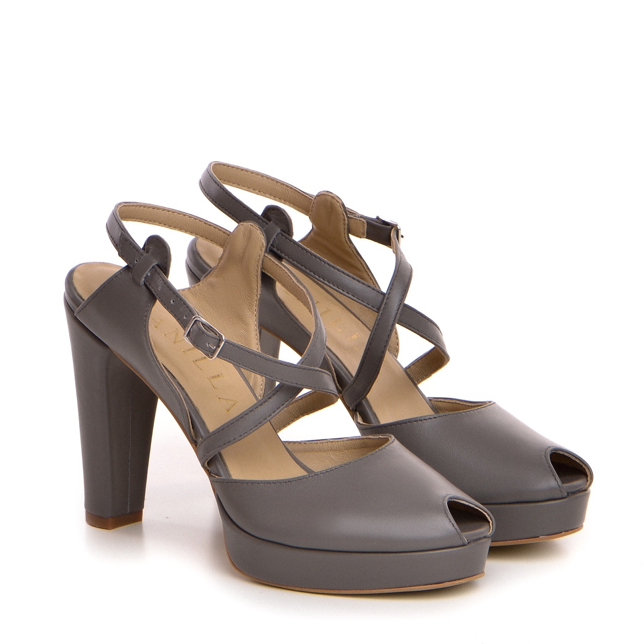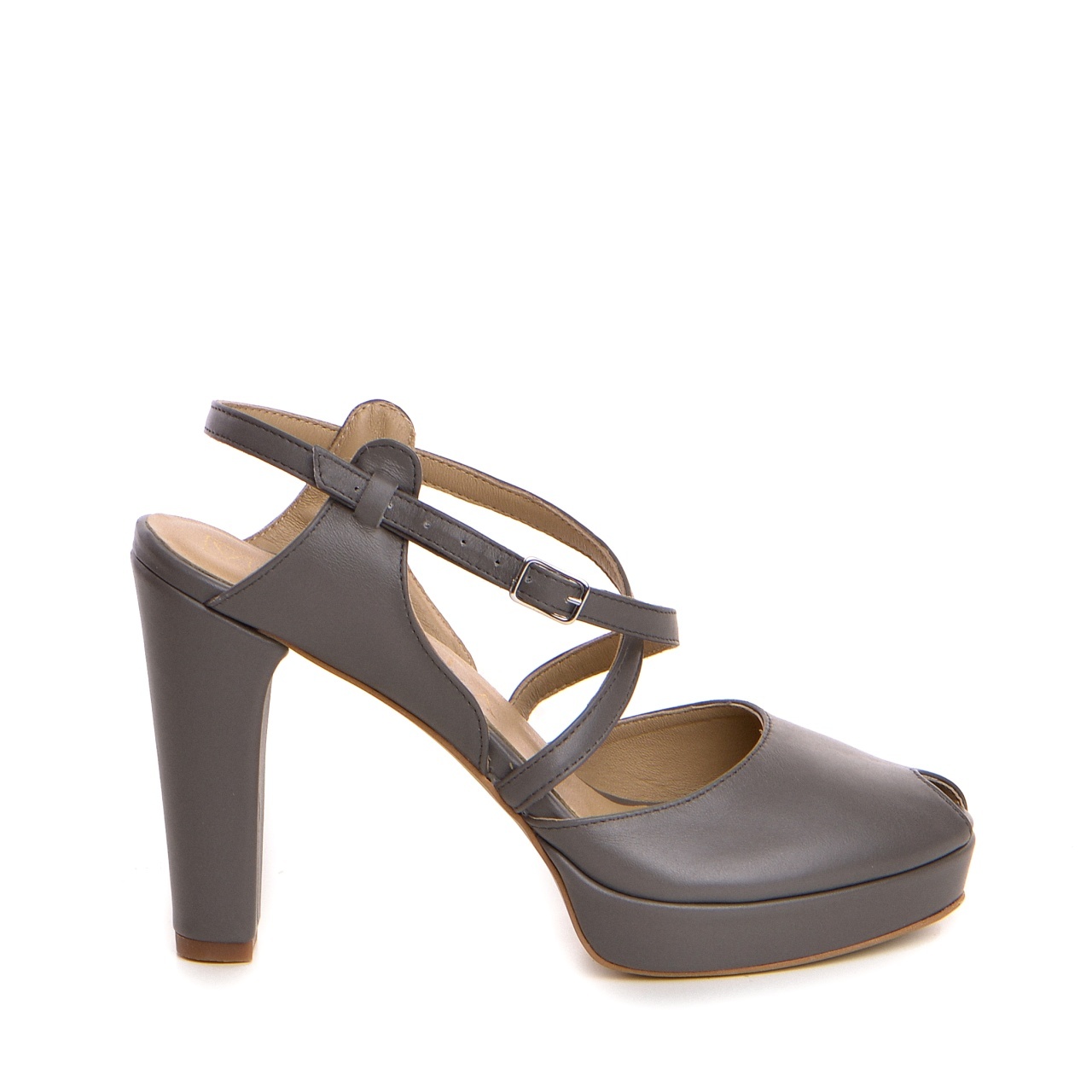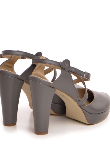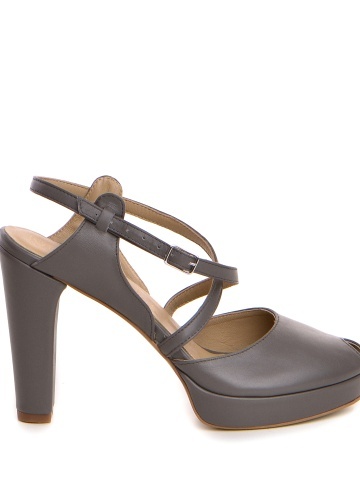 Sandale Congo cu toc gros, piele naturala, gri inchis