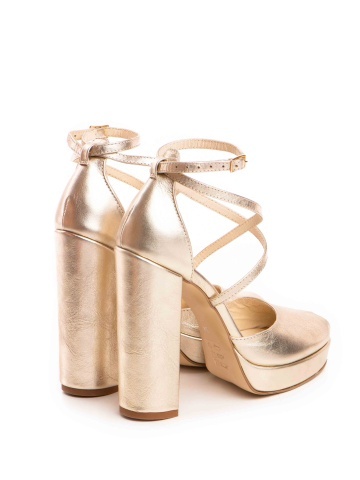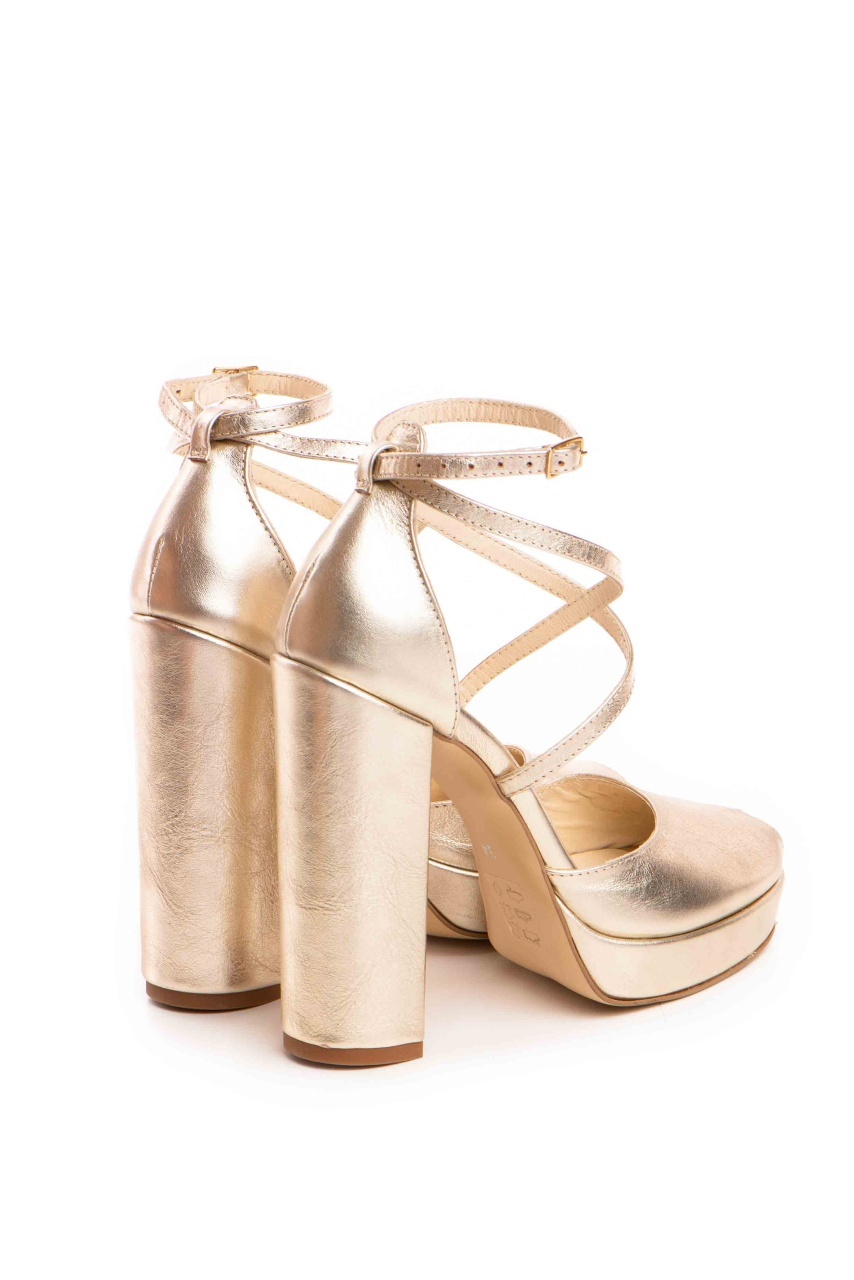 Sandale Fabiana cu toc gros, piele naturala, auriu