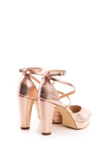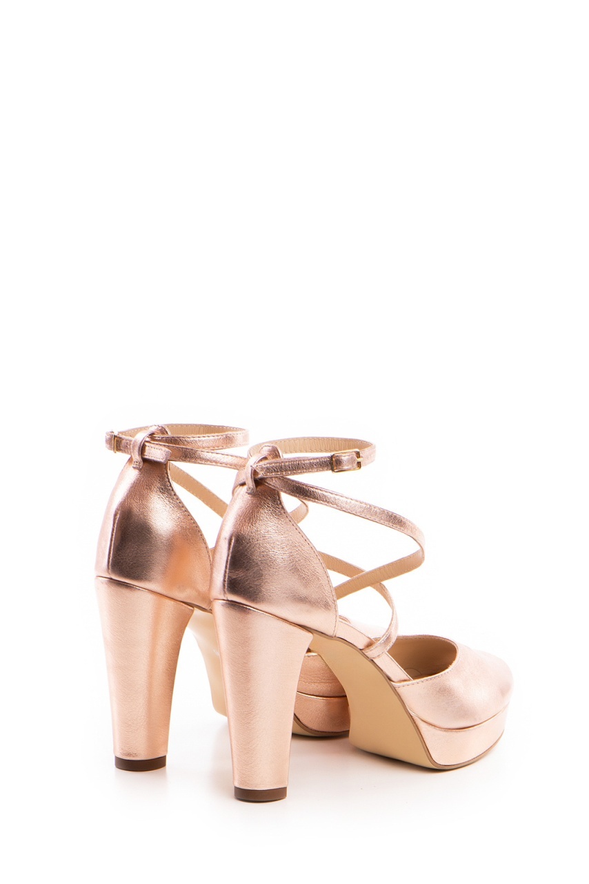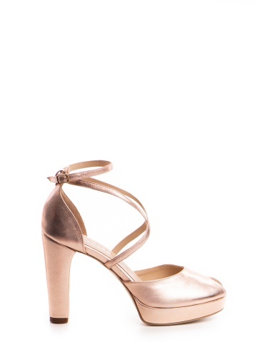 Sandale Fabiana cu toc mic gros, piele naturala, sampanie