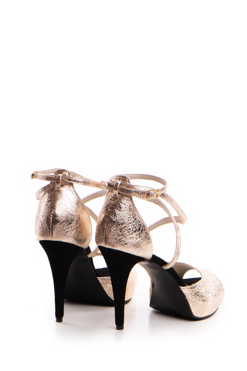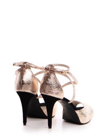 Sandale Manila cu toc mic subtire, piele naturala auriu si negru