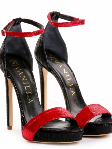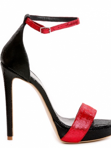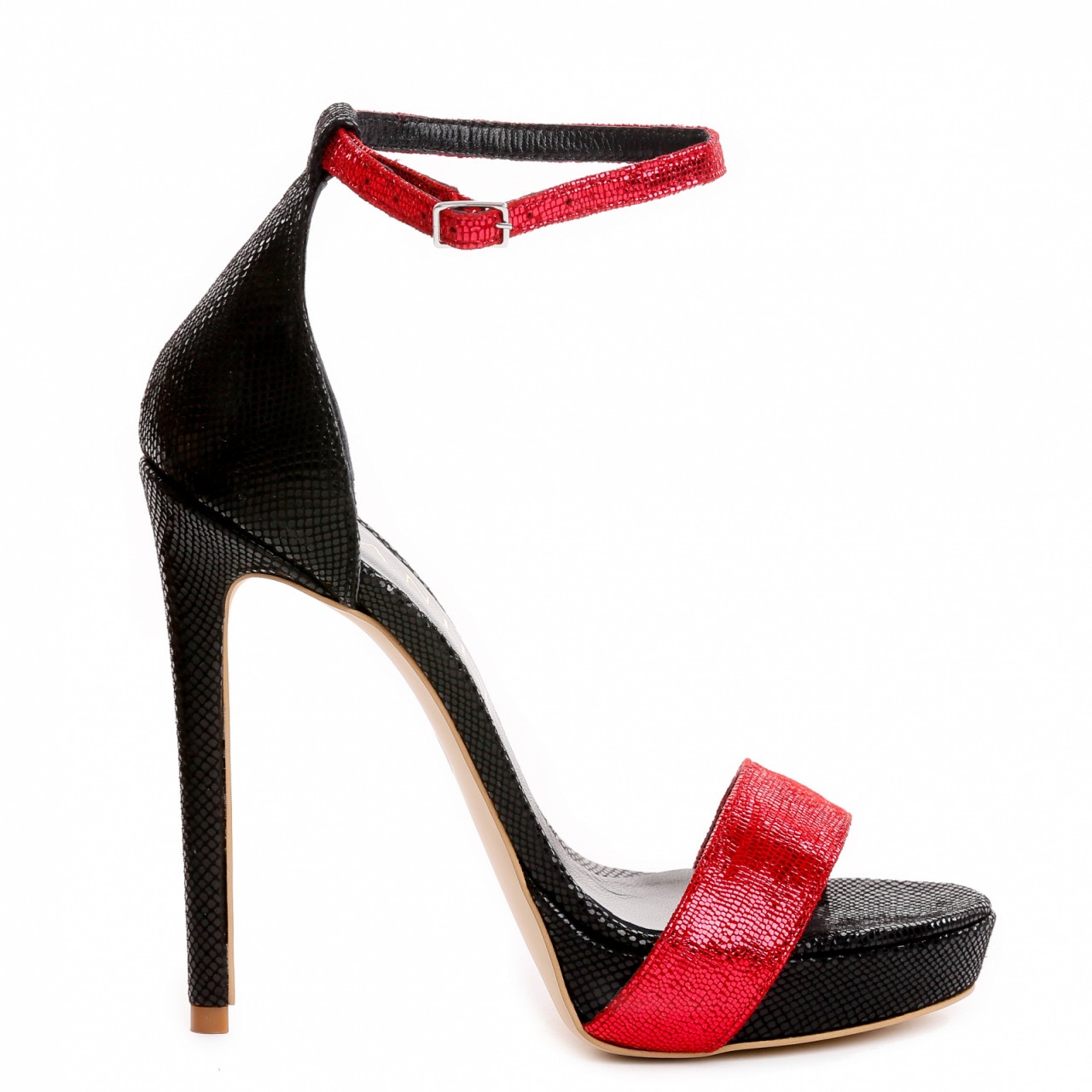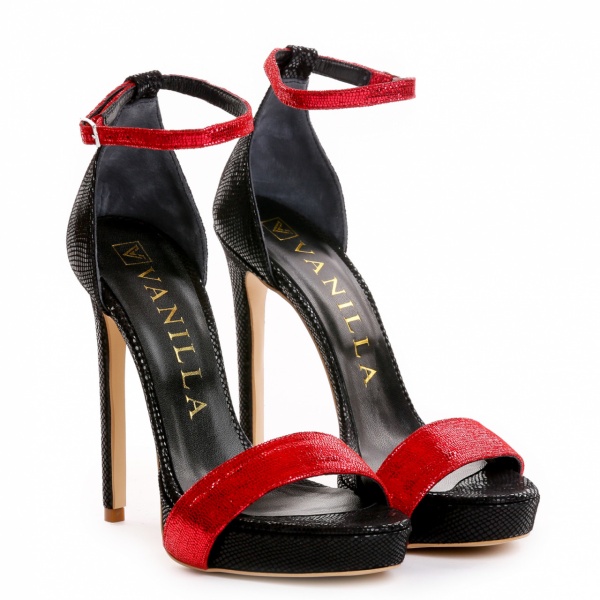 Sandale Mozambic cu toc subtire, piele naturala, rosii si negre
