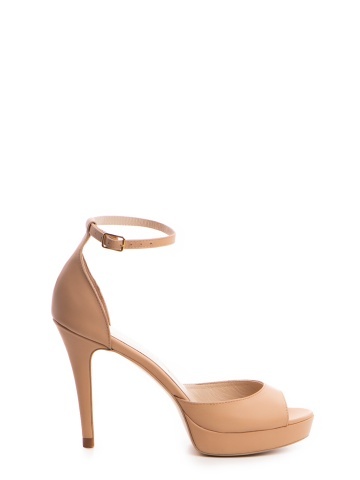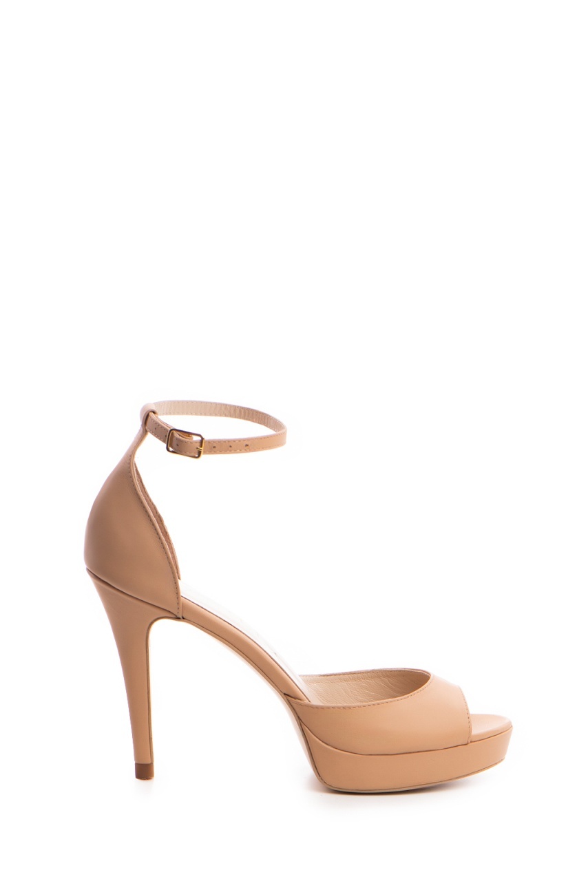 Sandale Oslo cu toc mic subtire, bej