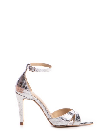 Sandale Princess cu toc subtire, piele naturala imprimeu argintiu