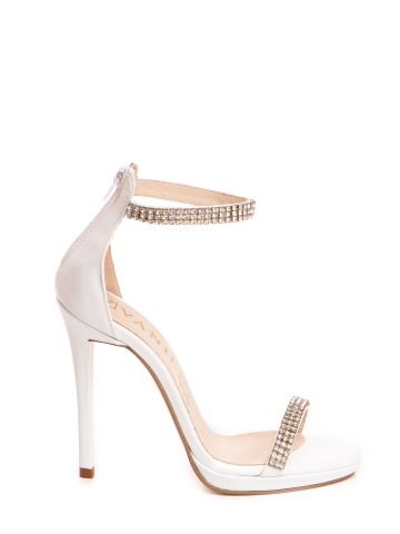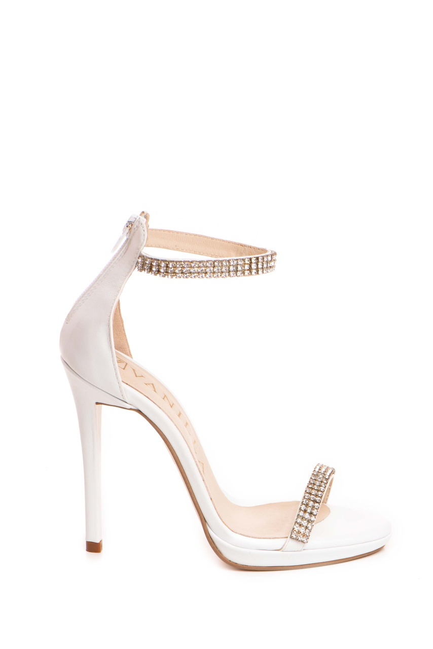 Sandale Pure Crystals cu toc subtire, piele naturala, alba