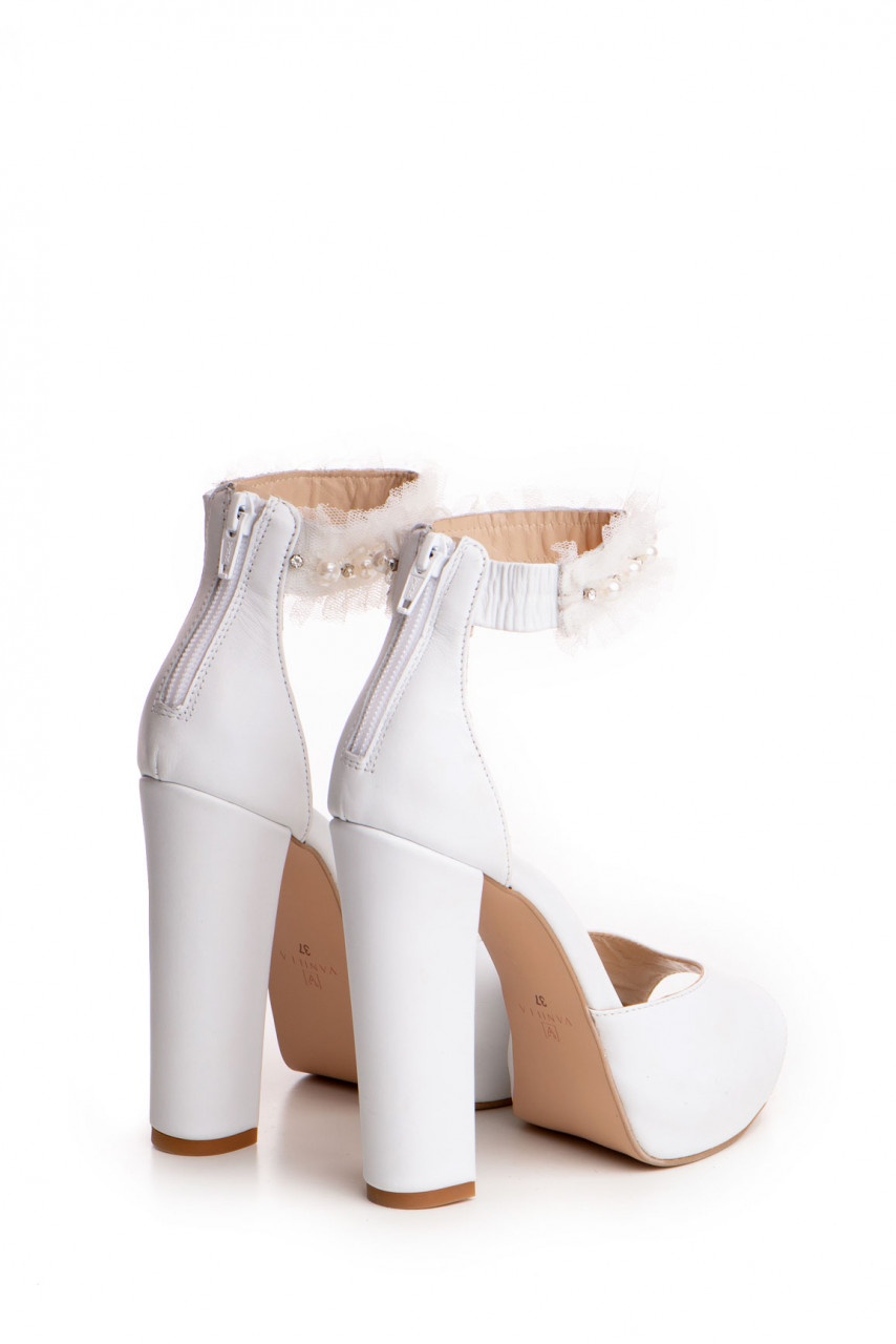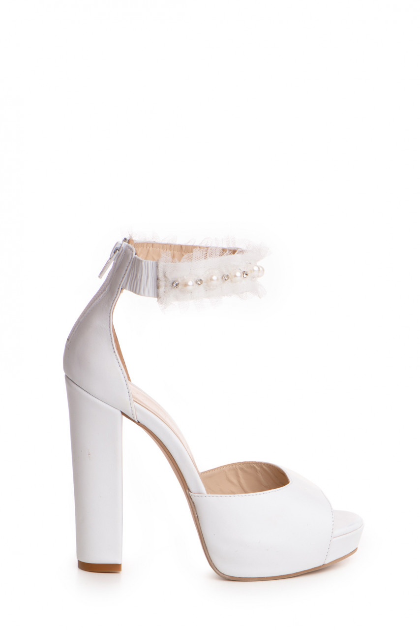 Sandale albe cu toc gros din piele naturala cu executie impecabila si senzatie de confort rafinat si feminin
