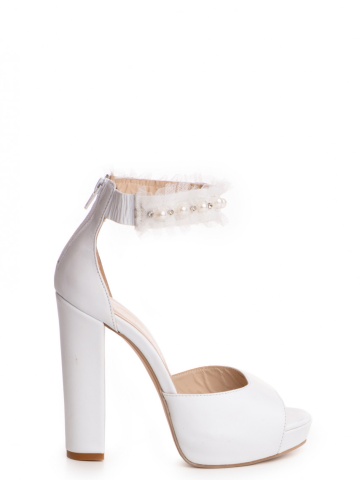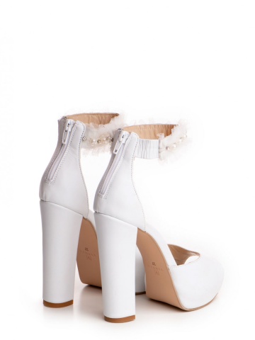 Sandale Retro Pearl cu toc gros, piele naturala, culoare alb