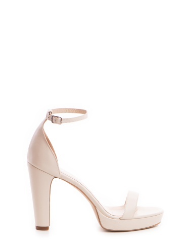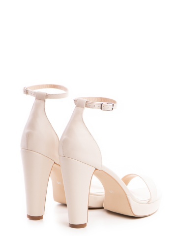 Sandale Viena cu mic toc gros, piele naturala, crem