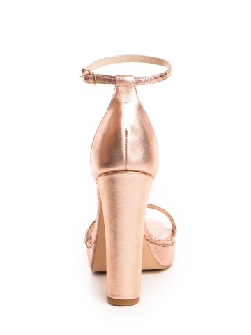 Sandale Viena cu toc gros, imprimeu sarpe, sampanie