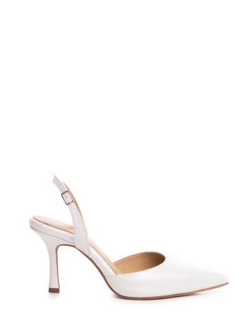 Descoperiti pantofii Thea din piele naturala alb sidef, cu toc mic evazat de 8 cm, marca Vanilla Days. Acesti pantofi cu toc sunt ideali pentru ocazii speciale sau pentru a adauga o nota eleganta tinutelor de zi cu zi. Materialul exterior si interior din piele naturala asigura confort pe parcursul intregii zile, in timp ce accesoriile metalice argintii completeaza designul sofisticat.